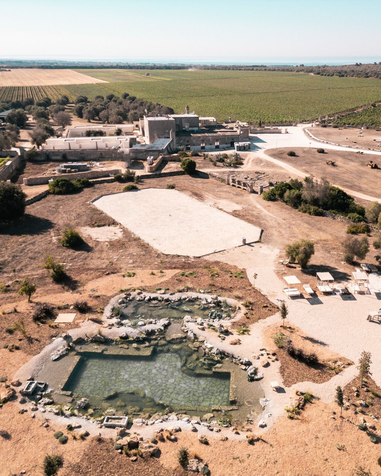 When Camilla Rossi Chauvenet arrived in 2007, they found the historic masseria without vineyards at all. What they saw instead was possibility. The chance to restore a piece of Manduria’s agricultural heritage. The project became a long and patient rebirth, and today roughly 40 hectares of vineyards have been replanted across the estate.