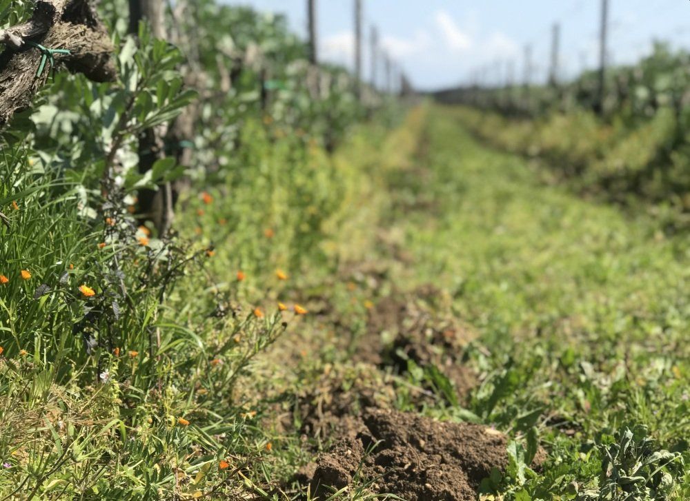 Farming here is fully organic. No pesticides, no herbicides, no synthetic fertilizers. Wild plants that grow naturally in the vineyard are treated as allies rather than weeds. Green manures, often beans or grasses, are planted between rows and buried in spring to nourish the soil. The idea is simple. Let the vineyard function as a living ecosystem.